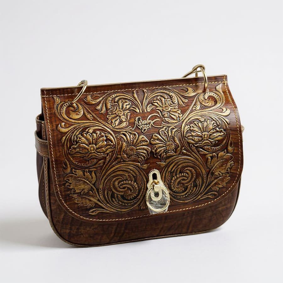 This bag is crafted from 100% genuine leather and offers a classic, timeless elegance with its handcrafted embossed detailing. Its medium-sized design makes it both practical and aesthetically refined, suitable for everyday use as well as special occasions.